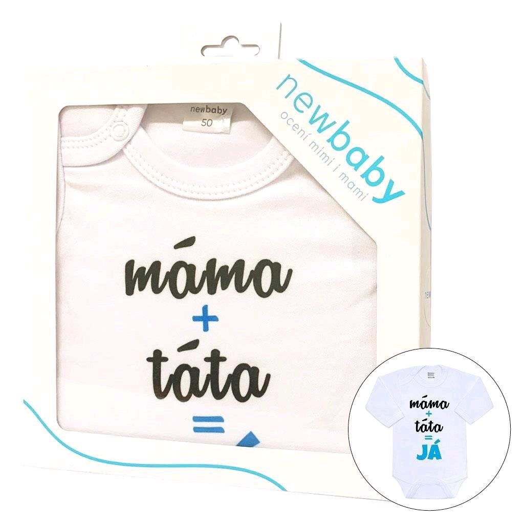 Body s potiskem New Baby máma plus táta rovná se JÁ - dárkové balení