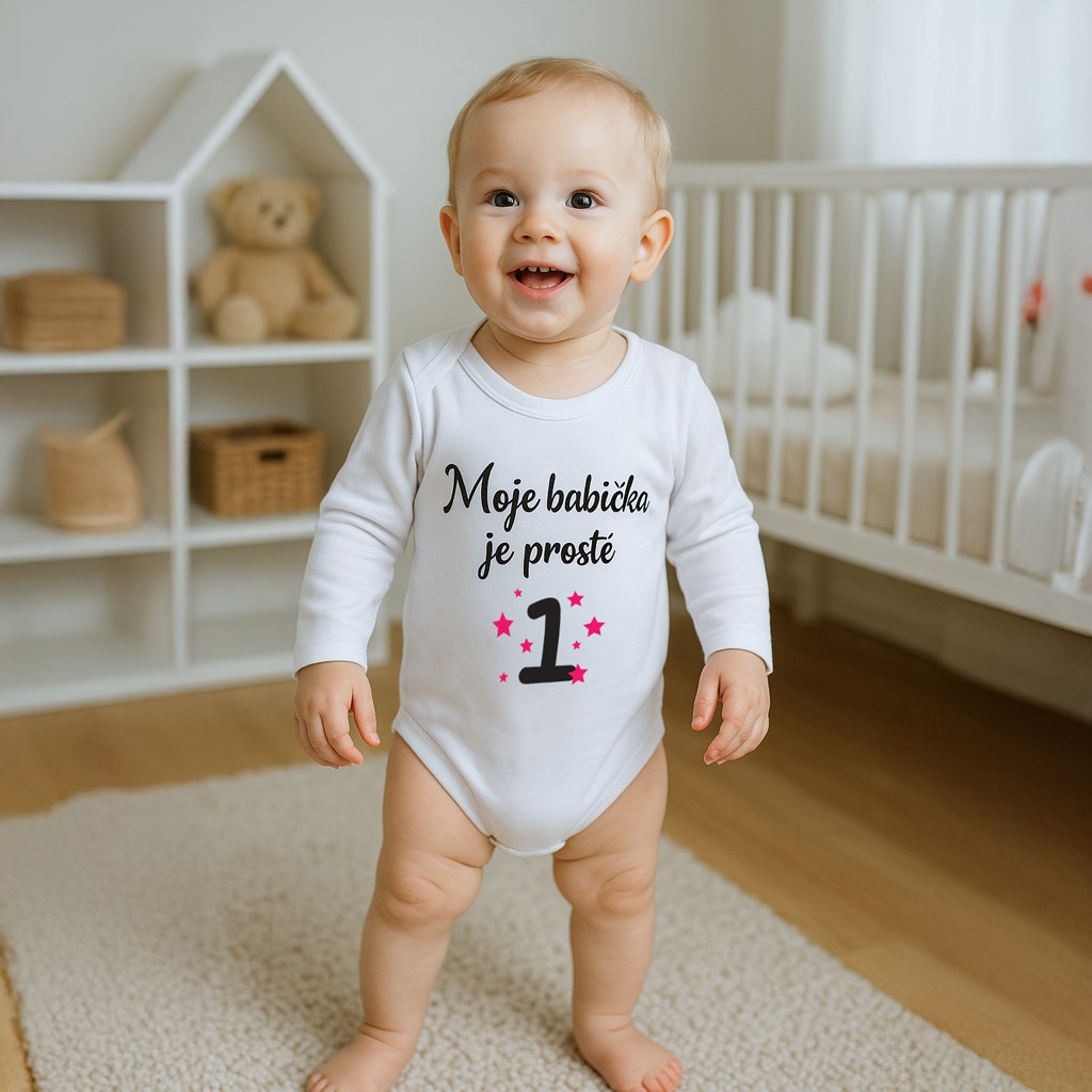 Body s potiskem New Baby Moje babička je prostě jednička - dárkové balení