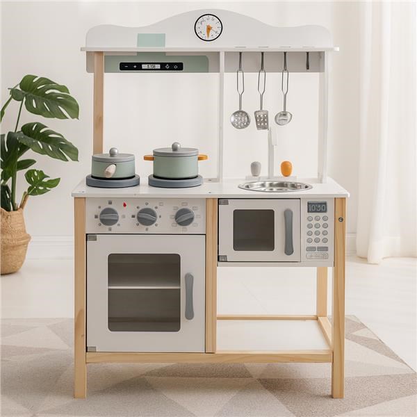 Dětská kuchyňka Baby Mix je krásná a stylová dřevěná hračka, která promění každý pokoj v malé kuchařské království. Díky svému modernímu designu v bílé barvě, realistickým detailům a kvalitnímu provedení je ideální volbou pro děti, které milují hraní rolí, vaření a napodobování dospělých.