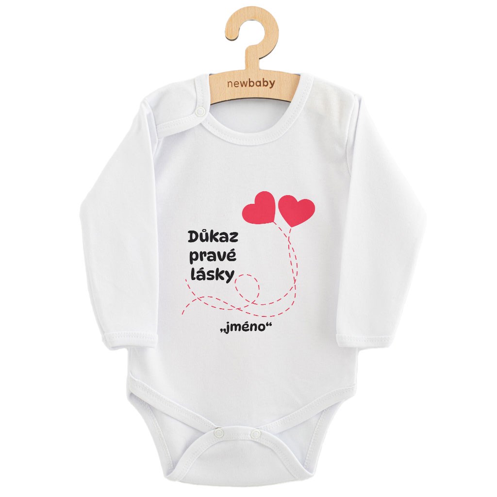Dětské body s potiskem New Baby Důkaz pravé lásky "se jménem dítěte"