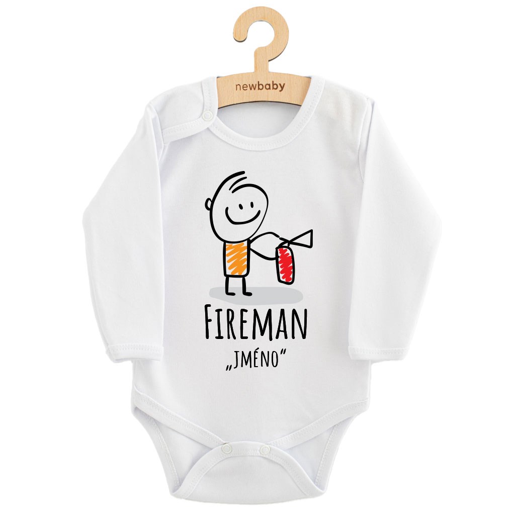 Dětské body s potiskem New Baby FIREMAN "se jménem dítěte"