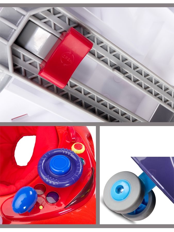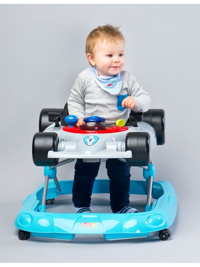 Dětské chodítko Toyz Speeder ve tvaru formule se čtyřmi kolečky. Chodítko obsahuje klíč, volant i zpětné zrcátko a vydává zvuky. Je nastavitelné do několika poloh a má pohodlný potah, který je v zadní části vyztužený. Vyrobeno z kvalitního plastového materiálu. Baterie nejsou součástí balení. Rozměry cca 53,5 x 61,5 x 74 cm. Výška sedátka cca 25-28,5 cm. Vnitřní rozměr 22 x 23 cm. Váha cca 5,2 kg. Nosnost do 12 kg. Určeno pro děti od 6 měsíců.
