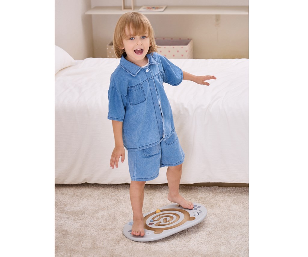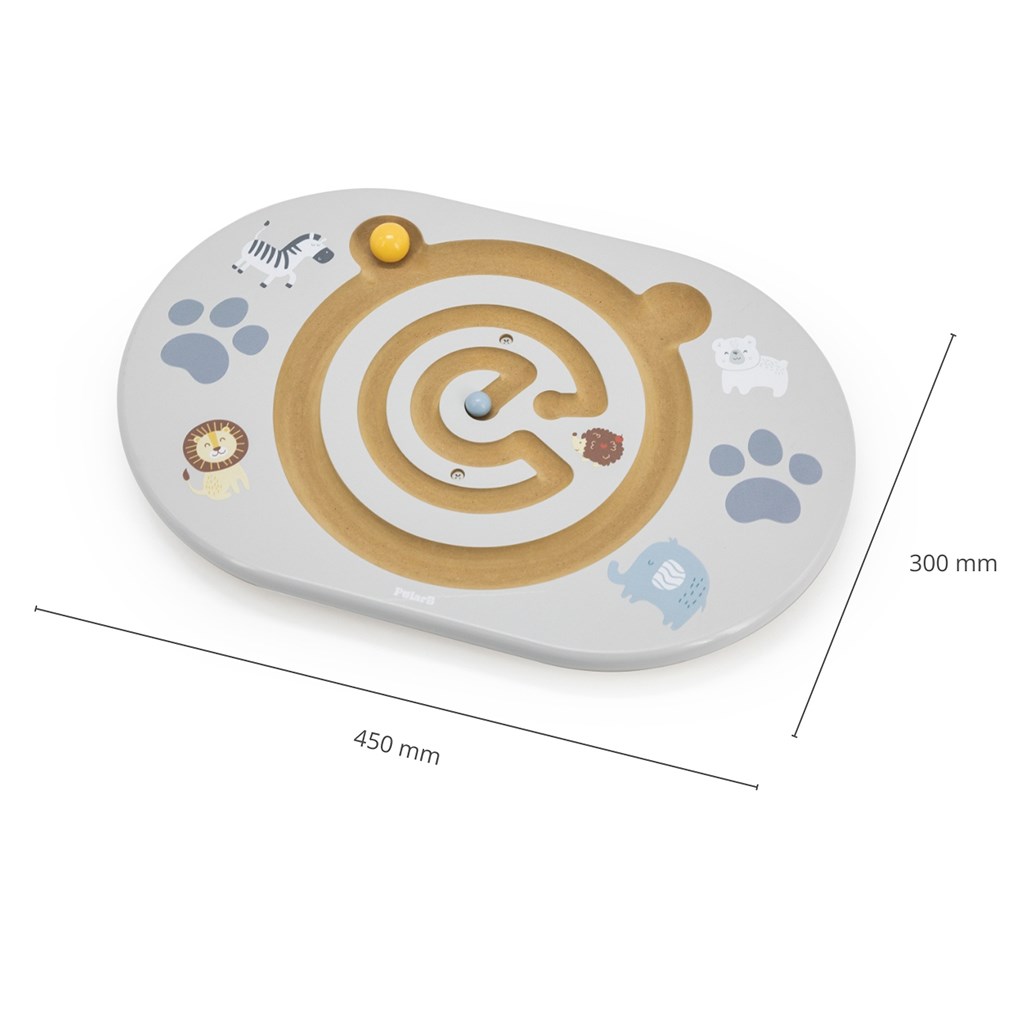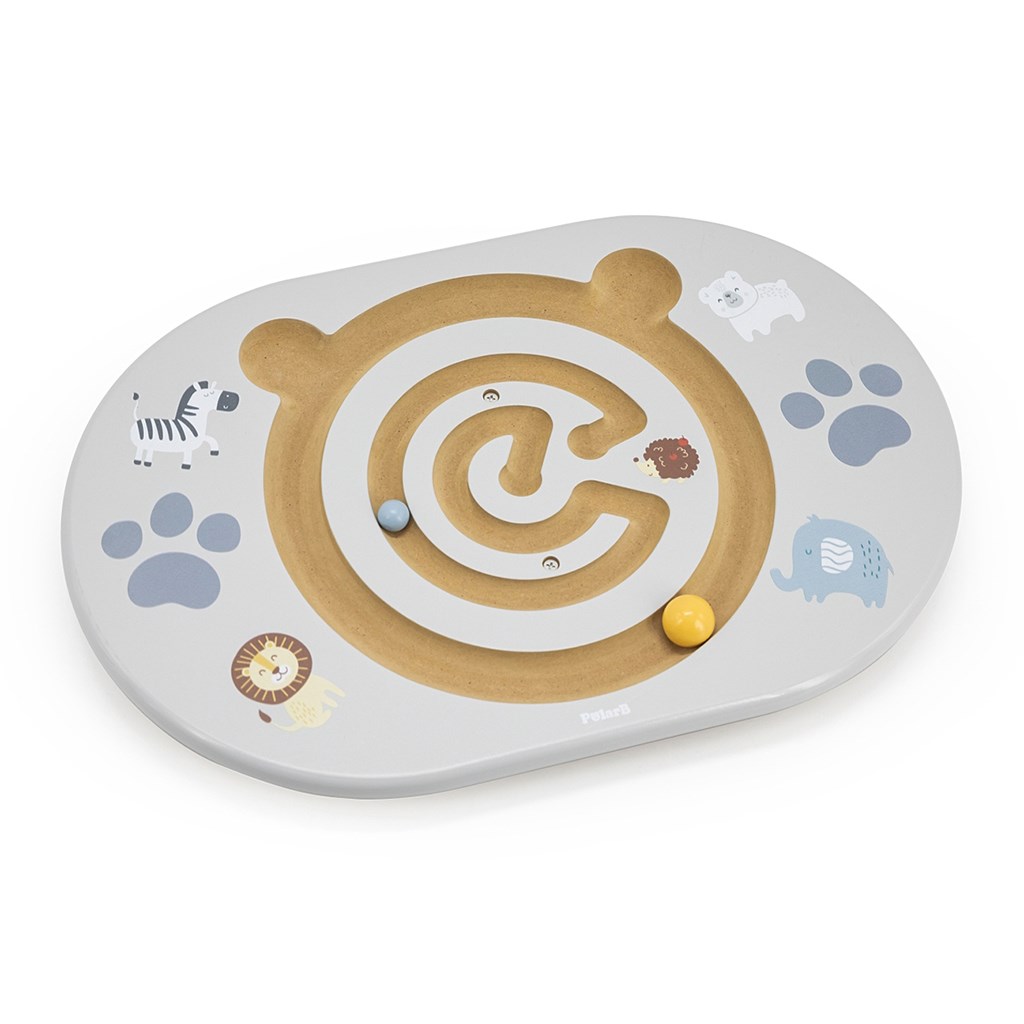 Balancující labyrint je ideální hračka pro děti od 4 let, která podporuje rozvoj rovnováhy, pohybové koordinace a koncentrace. Sada obsahuje balanční desku s vyfrézovaným labyrintem ve tvaru medvídka a dvě dřevěné kuličky. Úkolem dítěte je pomocí balancování posouvat kuličku po dráze, čímž si hravou formou trénuje rovnováhu a kontrolu těla.