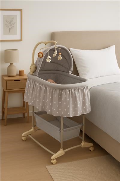Multifunkční kolébka postýlka pro miminko New Baby hvězdičky šedá