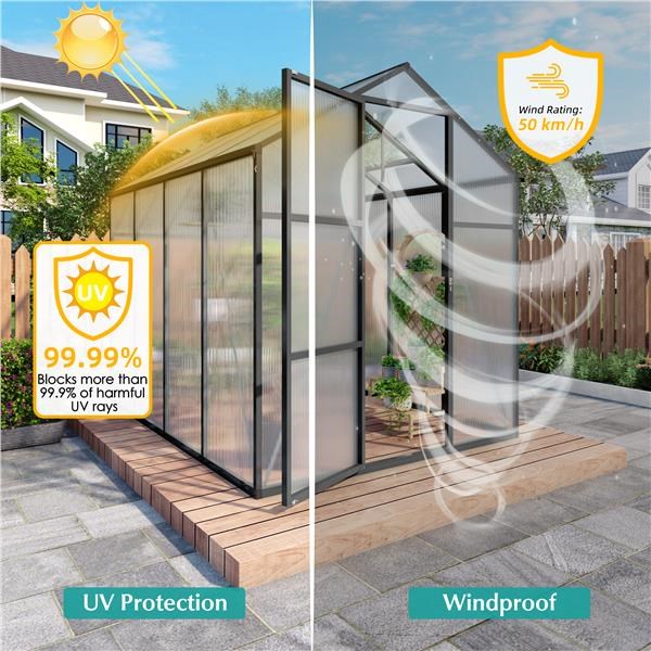 Zahradní skleník 183 × 244 cm polykarbonát, hliníkový rám