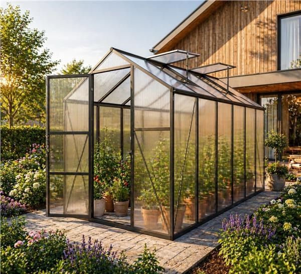 Díky odolnému hliníkovému rámu a výplni z UV stabilizovaného polykarbonátu poskytuje skleník spolehlivou ochranu před nepříznivým počasím, zároveň udržuje optimální teplotu a dostatek světla pro zdravý růst rostlin.