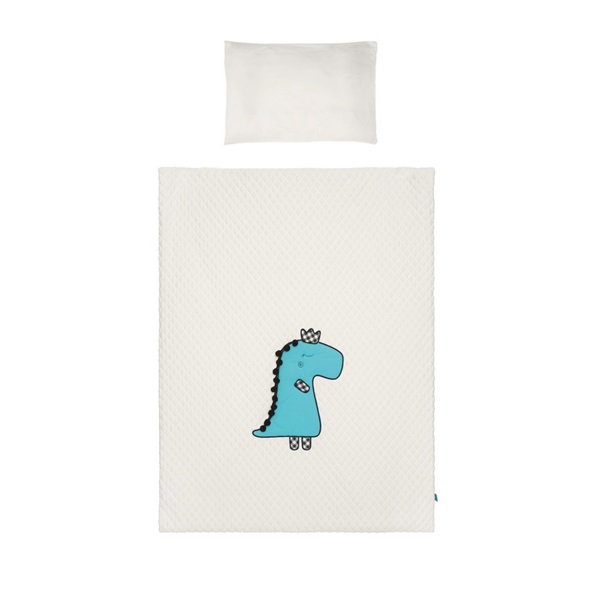 Dětská 6-dílná souprava do postýlky Belisima Dino 3D pro miminka. Souprava je zdobena 3D vzorem. Je vyrobena z měkkého, příjemného materiálu. Složení: vrchní strana: 50% bavlna, 50% polyester. Spodní strana: 100% bavlna. Souprava obsahuje povlečení na polštářek cca 40x60 cm, povlečení na peřinku cca 90x120 cm, mantinel cca 180 cm, výplň: polštářek, peřinka a nebesa. Nebesa: 150x200 cm.