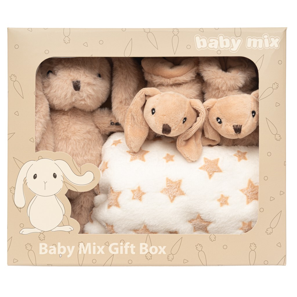 Dárková sada Baby Mix – hnědý králíček s botičkami a dečkou