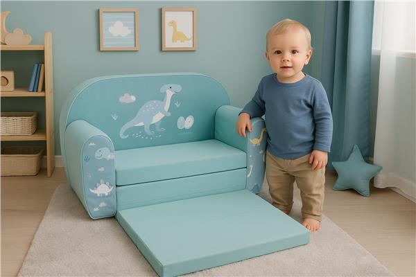 Krásná dětská rozkládací pohovka New Baby Dinosaur je skvělým a velmi oblíbeným doplňkem do dětského pokojíčku. Naše pohovka pro nejmenší děti je vyrobena z měkké a lehké pěny, a má snímatelný bavlněný potah, který lze prát. Díky zipu lze potah jednoduše sundat. Potah má velmi příjemné barvy a zdobí ho obrázek dinosaura, čímž dítě zaujme. Dítěti zajistí komfort a vkusně doplní dětský pokojíček. Křeslo může sloužit během odpočinku či koukání na pohádky, nebo také při zábavě. Naše autorská kolekce pochází od šikovných dizajnéru firmy Carero pod značkou New Baby. Dezény tiskneme na kvalitní materiály. Navrhujeme si nadčasové, elegantní a stylové vzory pro děti. Materiály mají certifikát OEKO-TEX STANDARD 100. Rozměry: vxdxh: 42×78×35. Délka po rozložení pohovky je 81 cm. Výška sedací části od země je 14 cm. Hloubka sedací části je 28 cm. Délka sedací části je 54 cm. Složení: potah 100% bavlna, vnitřní materiál: polyuretanová pěna.