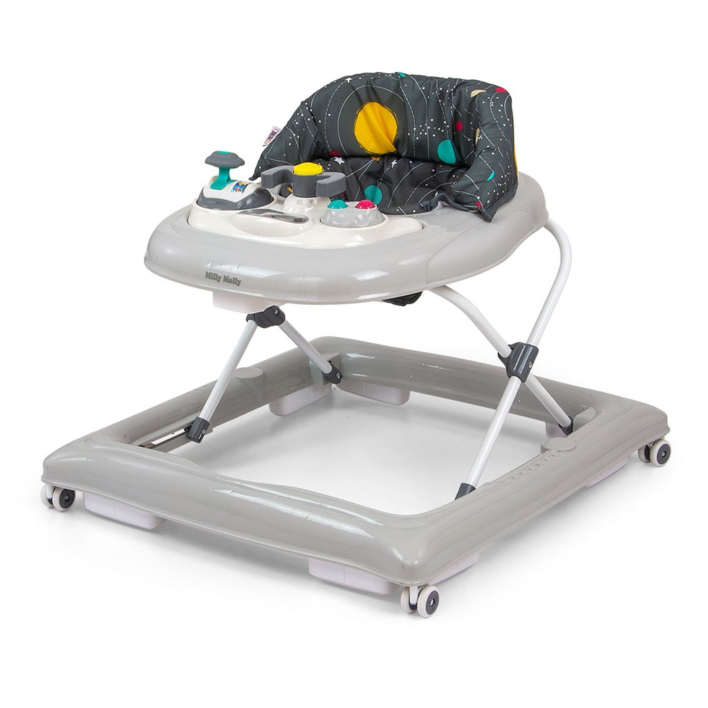 Výrobek má výukový panel, který obsahuje řadu překvapení čekajících na malé průzkumníky: světýlka, pískání, melodie, chrastítko, tlačítka a další pohyblivé prvky. Po sejmutí panelu z podnosu chodítka poslouží jako samostatná hračka, například jako společník na cesty, a deska poslouží jako hrací stolek.