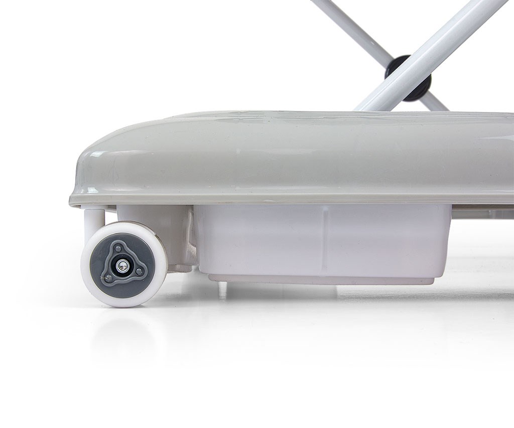 Čtyři kvalitní otočná kolečka, která nepoškrábou povrch, po kterém se pohybují, zajistí volnost pohybu a osm gumových zarážek ochrání dítě před sklouznutím ze schodů nebo jiných překážek.