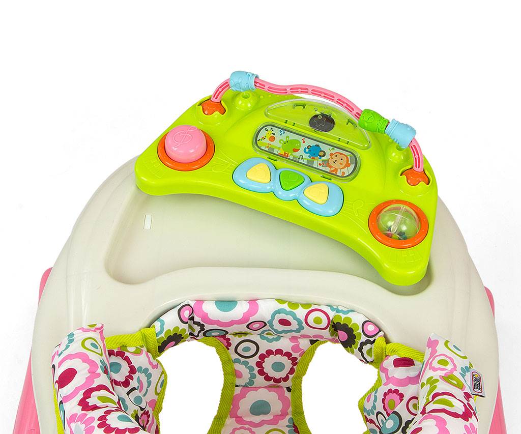 Výrobek má výukový panel, který obsahuje řadu překvapení čekajících na malé průzkumníky: světýlka, pískání, melodie, chrastítko, tlačítka a další pohyblivé prvky. Po sejmutí panelu z podnosu chodítka poslouží jako samostatná hračka, například jako společník na cesty, a deska poslouží jako hrací stolek.