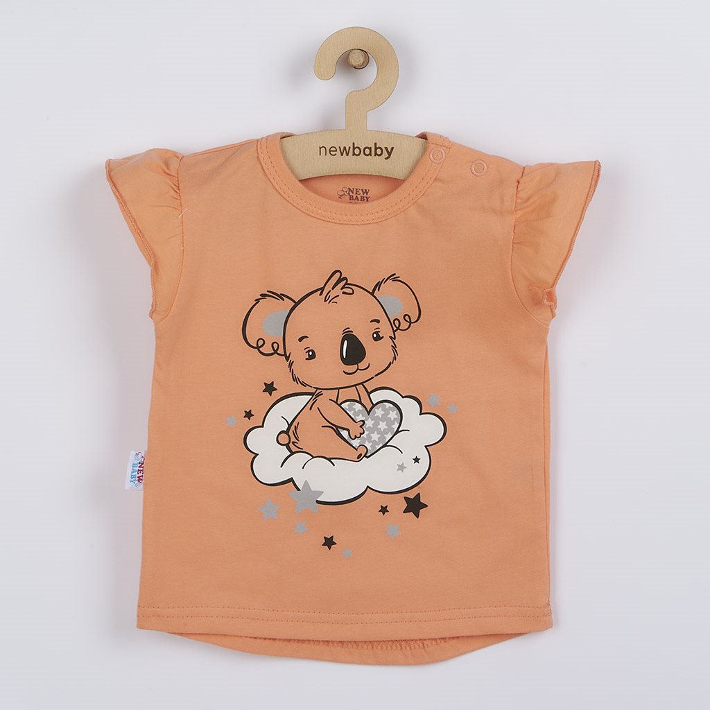 Holčičí bavlněné pyžamko české značky New Baby Dream s medvídkem. Letní pyžamko se skládá z trička s krátkým rukávem a kraťasů. Tričko s volánky zdobí na přední straně roztomilý obrázek medvídka na obláčku a hvězdiček. Zapínání na cvočky na ramínku. Kraťasy jsou celopotištěné medvídkami a na nohavičkách mají roztomilé volánky. V pase je širší lemem s gumičkou, který netlačí na bříško miminka. Vhodné i jako dětské letní oblečení. Složení: 100 % bavlna.