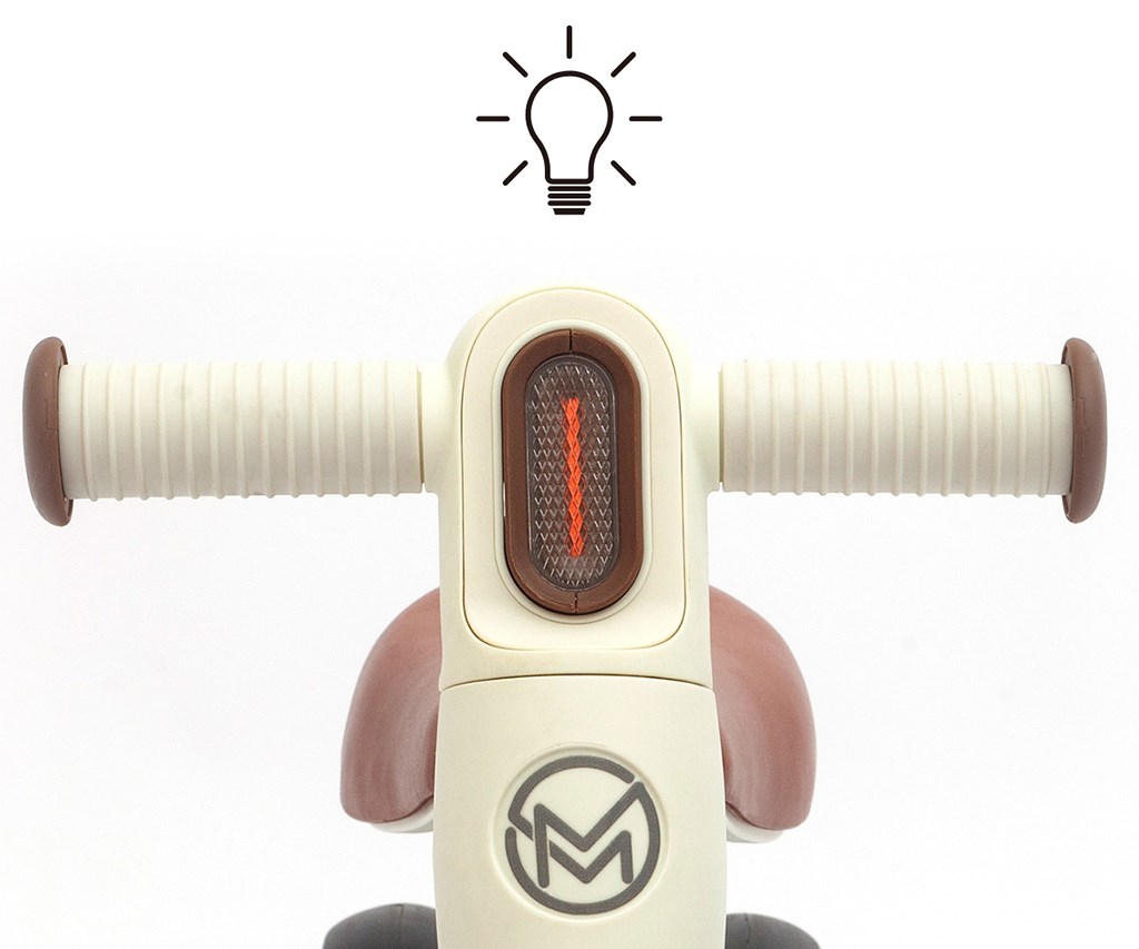 LED světlo zabudované v řídítkách (2× AAA/LR03 – nejsou součástí balení) dodává jízdě hravý efekt a motivuje dítě k pohybu. Odrážedlo je vhodné pro použití doma i venku na rovném povrchu.