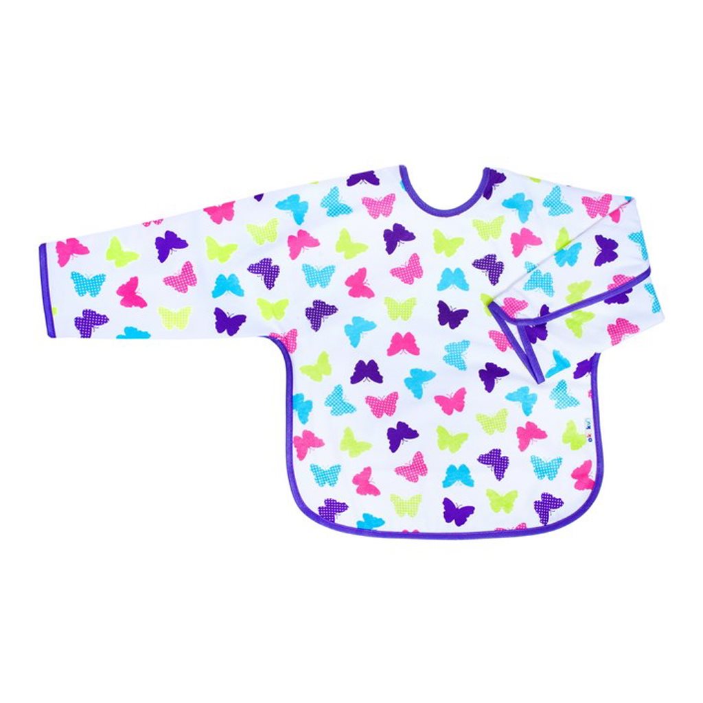 Dětský bryndák s rukávky Akuku bílý s motýlky