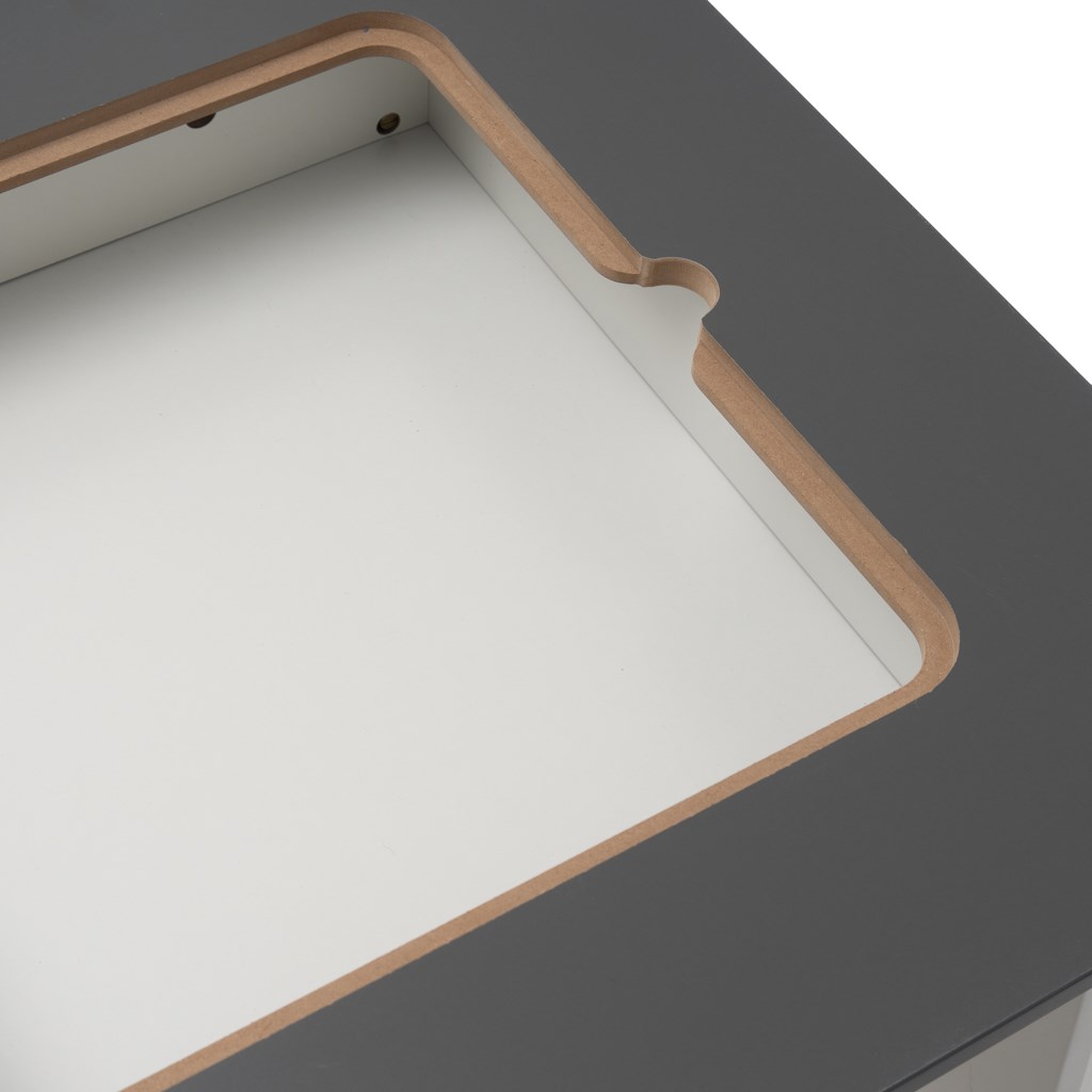 Součástí setu je stůl se dvěma židlemi vyrobený z odolného materiálu, který zajišťuje stabilitu a dlouhou životnost. Stůl je vybaven praktickou odnímatelnou deskou – pod ní se nachází úložný prostor, kam lze snadno schovat pastelky, papíry, drobné hračky nebo stavebnice. Děti tak mají potřebné věci vždy po ruce a zároveň udržují pořádek.