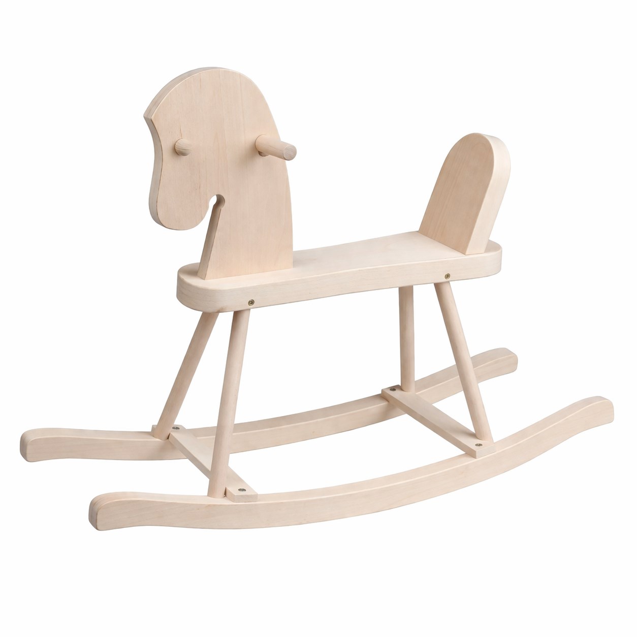 Koník je vyroben z bukového a dubového dřeva, díky čemuž je mimořádně pevný, stabilní a odolný. Profilované lišty zvyšují bezpečnost při houpání a poskytují dítěti jistotu i stabilitu při prvních pohybech.
