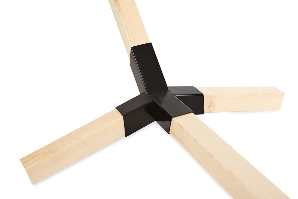 - Díky intuitivní konstrukci trvá montáž jen pár minut – stačí vložit dřevěné prvky do ocelových profilů. Bez šroubů, bez vrutů – připraveno k použití.