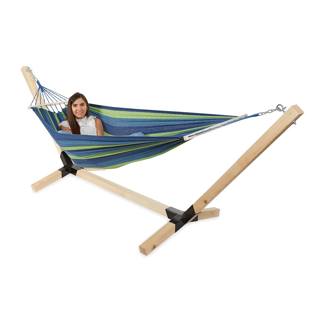 Masívní dřevěno-ocelový stojan na houpací síť XXL Baby Mix – maximální nosnost až 350 kg.