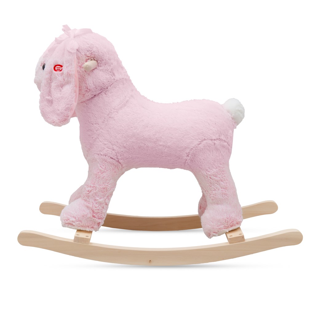 Stabilní dřevěné lyžiny a úchyty zajišťují bezpečné houpání, zatímco melodie aktivovaná tlačítkem rozvíjí sluch a přináší dětem spoustu radosti. Králíček má pohodlné sedátko bez opěrky – ideální pro starší batolata, která už umí udržet rovnováhu.