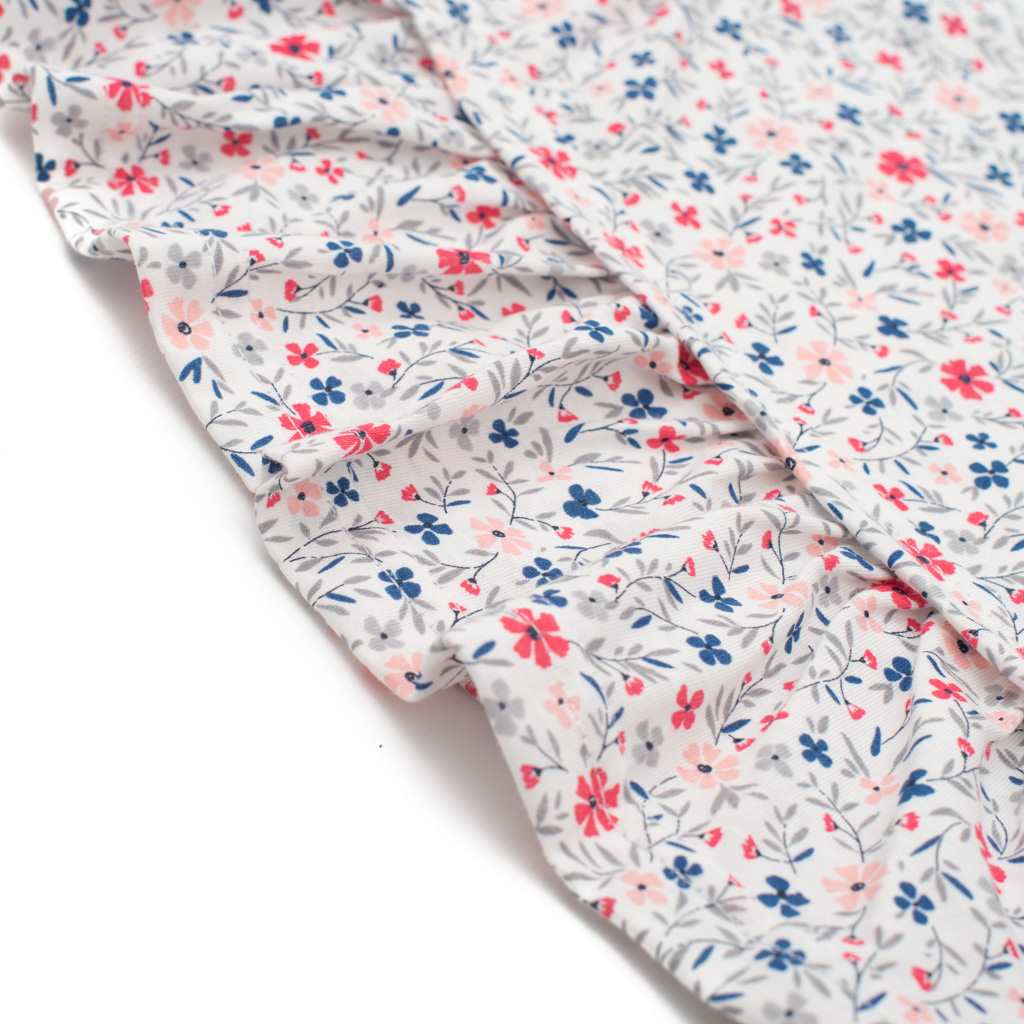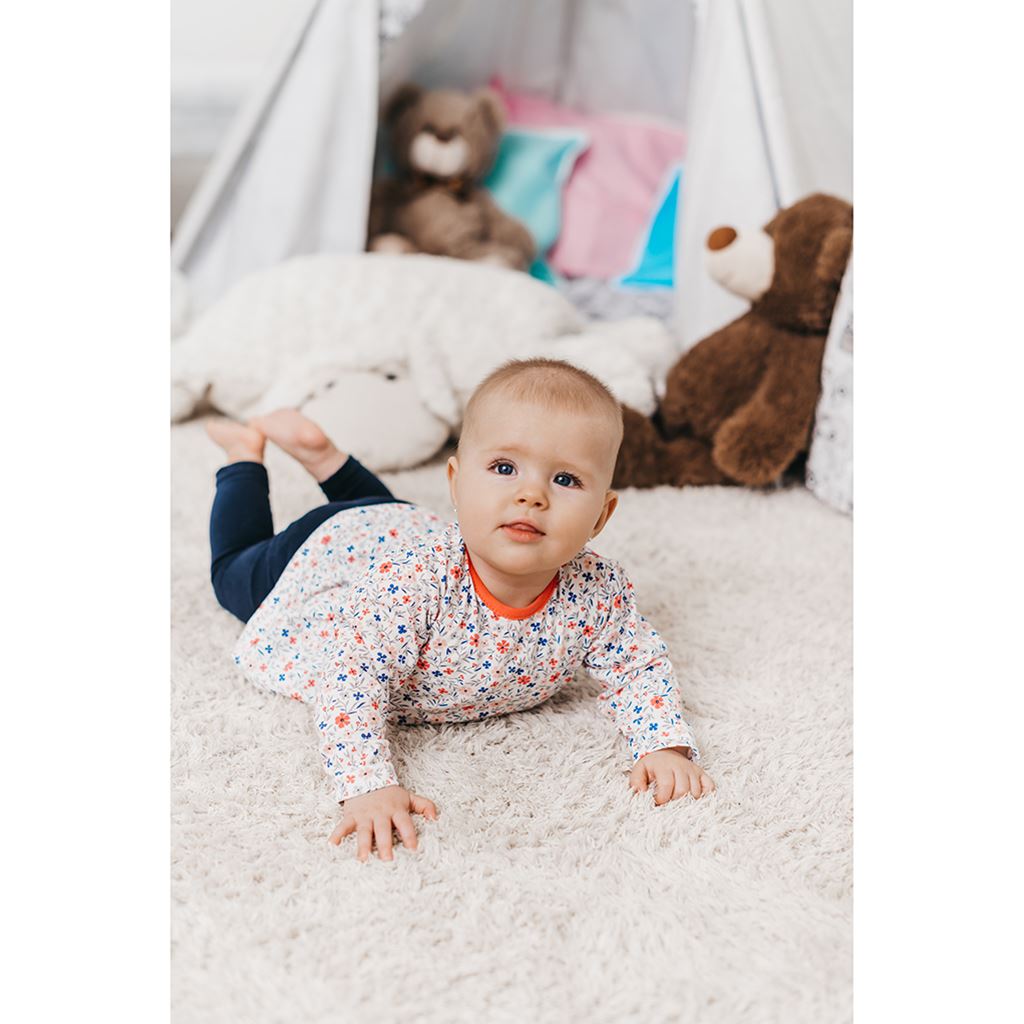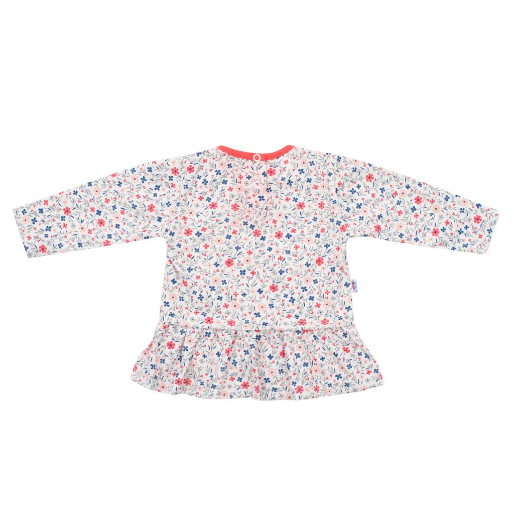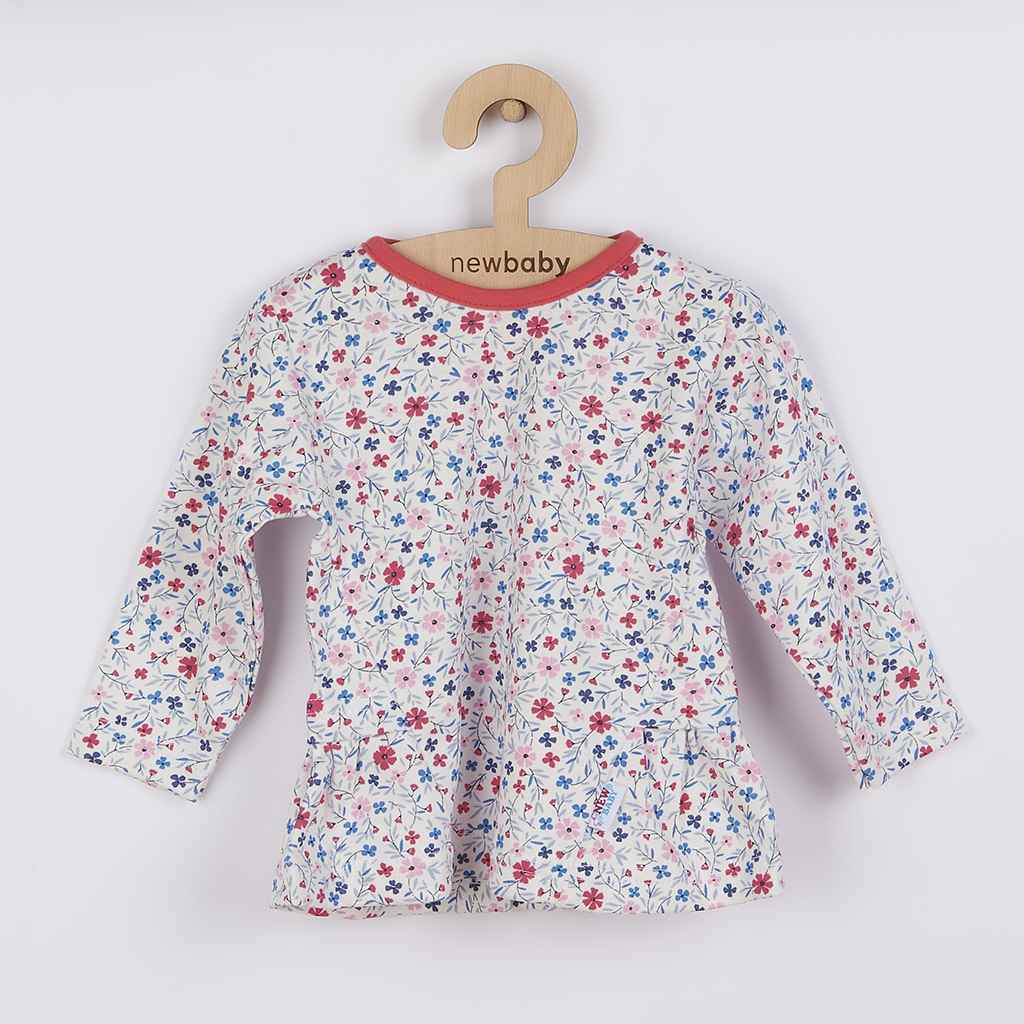 Kojenecká halenka s dlouhým rukávem české značky New Baby For Girls. Halenka Áčkového střihu je celopotištěná květinkami, na zadní straně v spodní části je krásně nařasená a pod krčkem má barevné lemováni. Je velmi precízně a kvalitně ušitá a fantasticky v sobě skloubila hru barev a květín. Zapínání vzadu na 2 cvočky ulehčí oblékání. Vhodná na celoroční nošení. Materiál: 100% bavlna.
