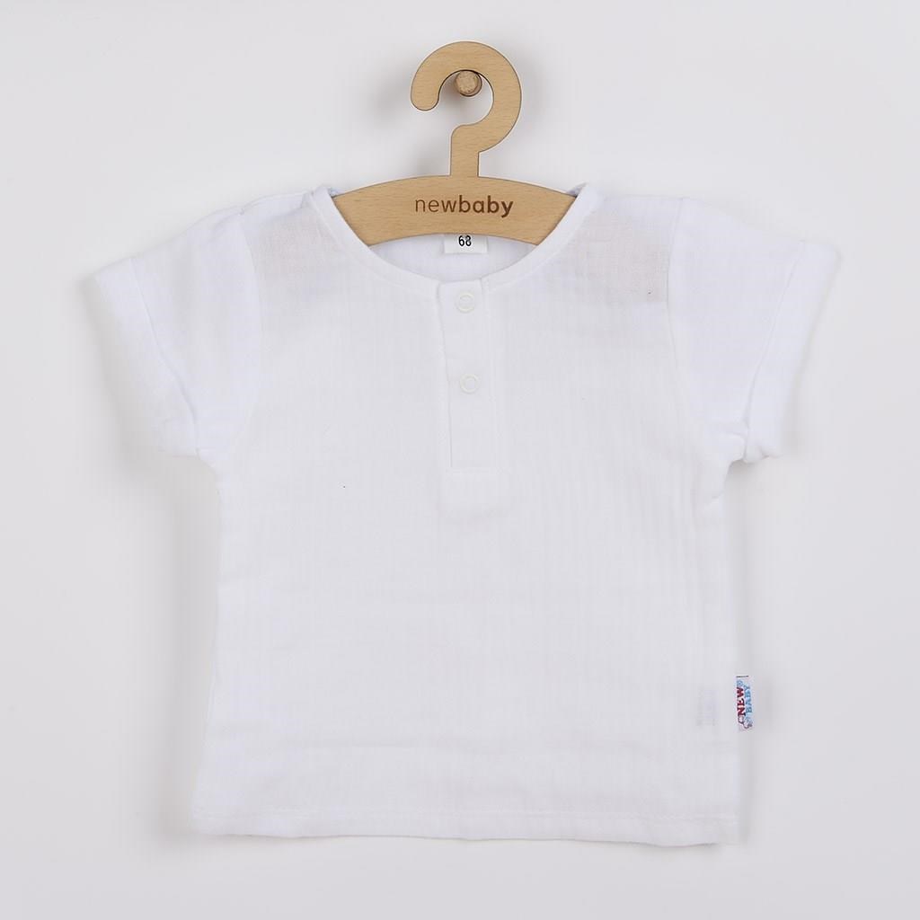 2-dílná mušelínová kojenecká soupravička české značky New Baby Summer Nature Collection pro chlapečky. Letní soupravička se skládá z trička a kraťasů. Tričko má krátký rukáv a dokonalý střih. Kraťasy jsou zdobeny kapsičkami a v pase mají širší gumu, která ale netlačí na bříško dítěte. Soupravička je lehounká a velmi příjemná při nošení. Složení: 100% bavlna.
