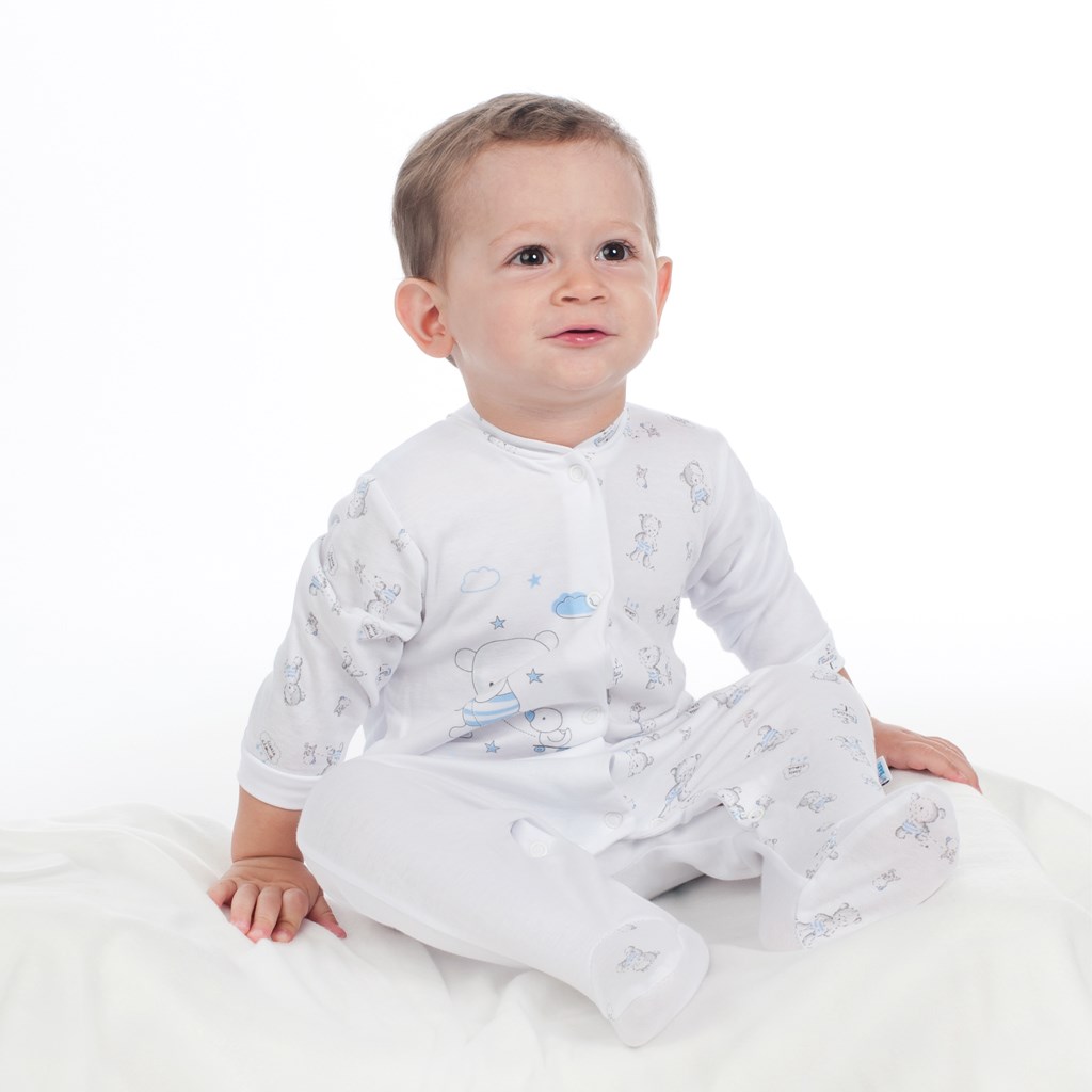 Kojenecké body s dlouhým rukávem New Baby Bears. Dětské body má rukávky celopotištěné medvídkami a přední strana je zdobena obrázkem medvídka a nápisem. Zapínání na cvočky na ramínku a mezi nožičkami. Složení: 100% bavlna.