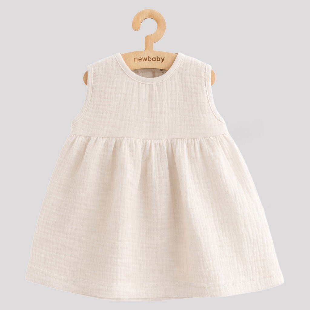 Módní mušelínové kojenecké šatičky české značky New Baby pro všechny malé parádnice. Šatičky jsou bez rukávů ve tvaru písmene A. Spodní část má krásně nařasenou sukýnku. Zapínání na cvoček na zadní straně usnadní oblékání. Šaty mají velmi příjemňoučký, měkoučký a kvalitní materiál, který je vhodný pro miminka. Jsou lehounké a velmi příjemné při nošení. Pro New Baby je velmi důležitá spokojenost zákaznika a právě proto vám nabízíme naši kvalitní letní mušelínové šatičky. Složení: 100% bavlna. OEKO-TEX STANDARD 100.