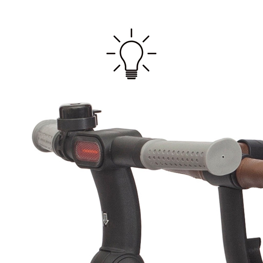 Twinkle je vybavena nastavitelnou rukojetí, funkcí volnoběhu, brzdou, bezpečnostními pásy s chrániči a pohodlným třípolohovým opěradlem a zaručuje úplnou kontrolu a pohodlí pro dítě i rodiče. Její lehký, ale odolný ocelový rám, kola s pěnovou výplní a kuličkovými ložisky, skládací konstrukce a praktické prvky, jako je síťovaná stříška, LED světlo, držák na nápoje a dva úložné boxy, z ní činí perfektní volbu pro každou příležitost – ve městě, na procházce nebo na výletě. Po odstranění rukojeti, kolejnic a stříšky lze Twinkle používat jako klasickou tříkolku.