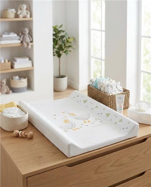 Praktický tvarovaný přebalovací nástavec New Baby Husičky z nepromokavého, plastového materiálu v příjemných pastelových barvách. Roztomilý a aktuální dětský vzor s husičkami jistě zaujme pozornost vašeho miminka.