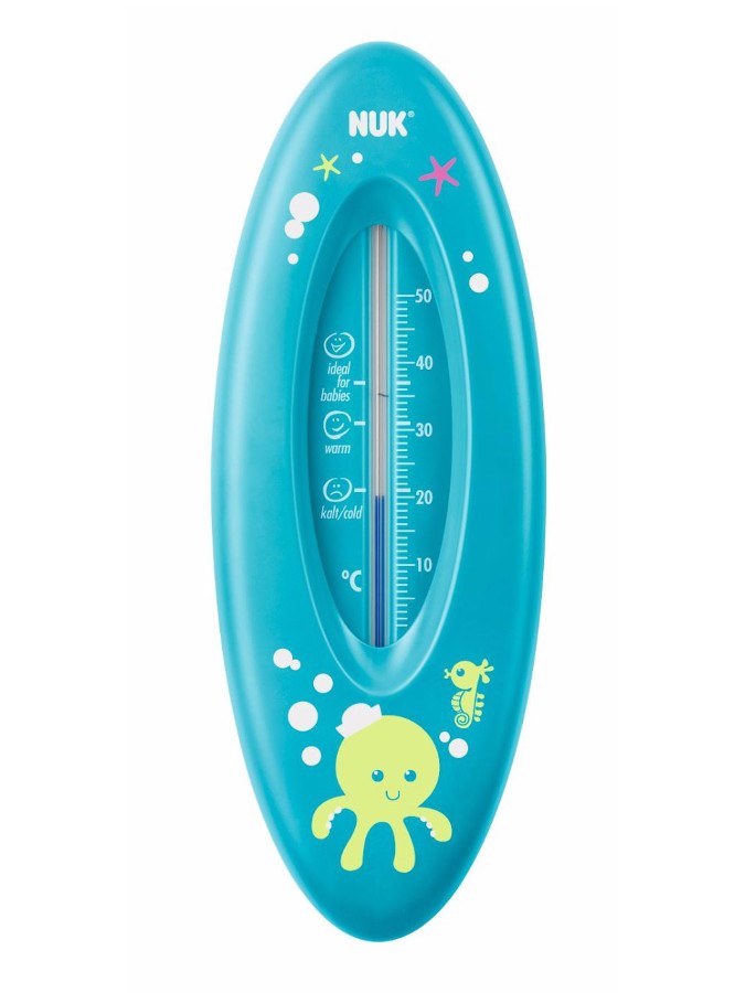 Barevný plovoucí teploměr NUK do vaničky. Vyroben z kvalitních a bezpečných materiálů. Zřetelné vyznačení teploty. Náplň tvoří neškodný řepkový olej.