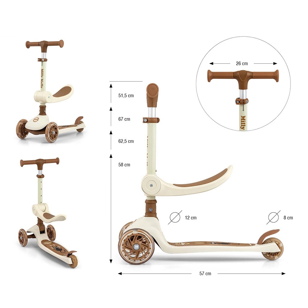 Tříkolová balanční koloběžka-scooter se sedátkem FUZZY Milly Mally classic
