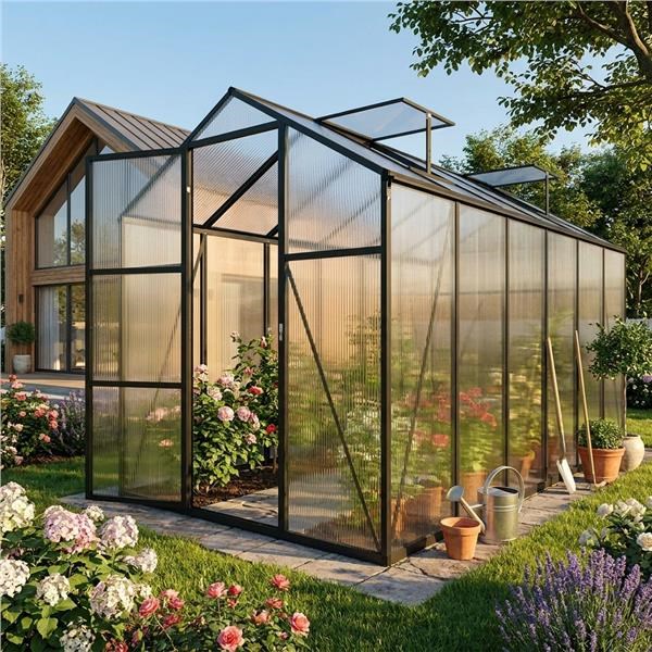 Zahradní skleník z polykarbonátu 368 × 185 × 209 cm – pevná konstrukce a celoroční ochrana rostlin