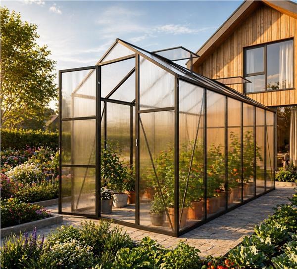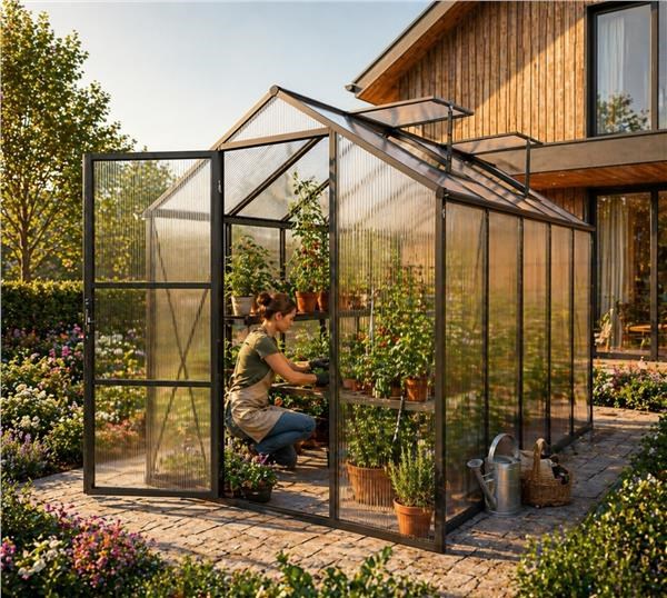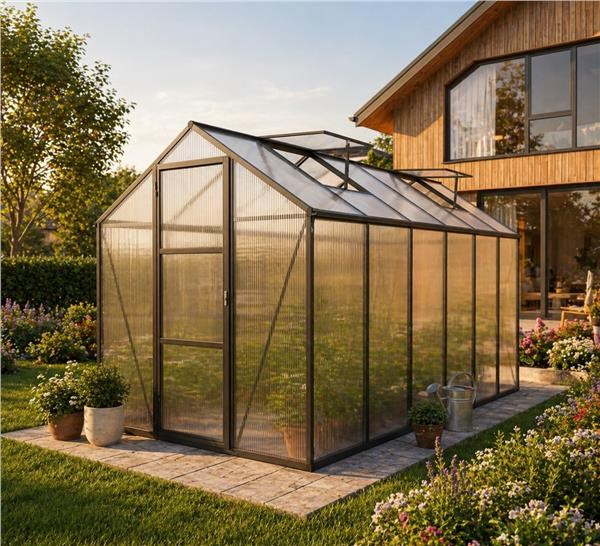Zahradní skleník s hliníkovou konstrukcí a polykarbonátovými panely