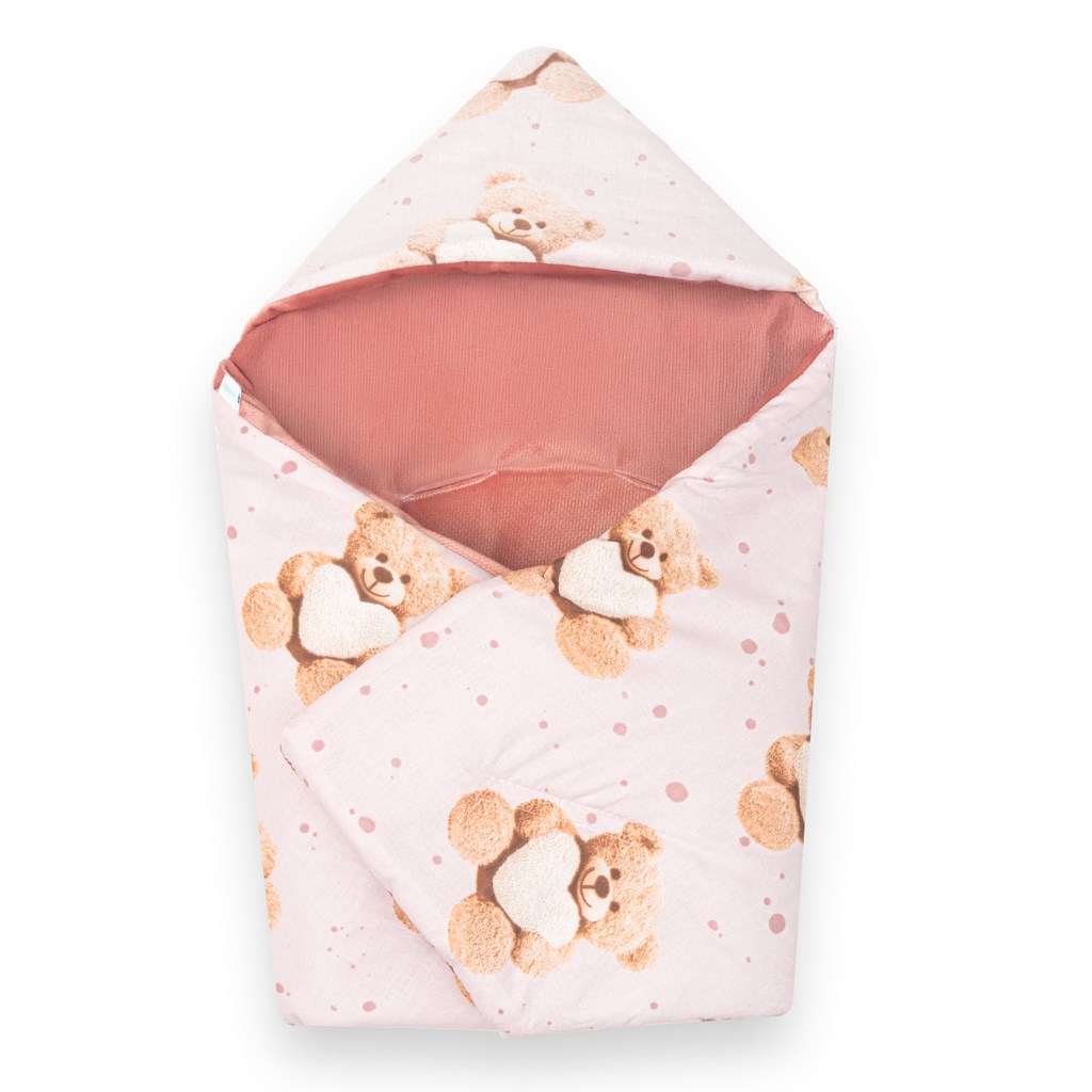 Zateplená zavinovačka do autosedačky New Baby Love Teddy Bear pink