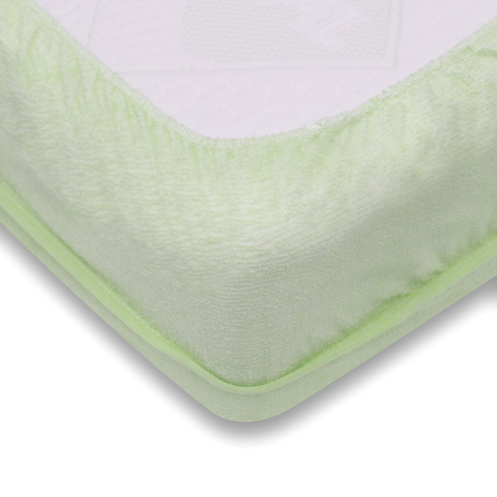 Froté prostěradlo s nepromokavou podložkou. Guma všitá po obvodu usnadňuje přizpůsobení k matraci. Rozměr 60x120 cm.